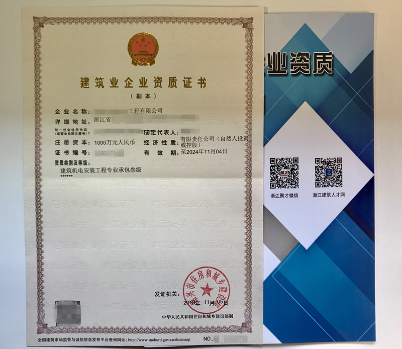 2019年11月,經(jīng)浙江省住房和城鄉(xiāng)建設(shè)廳審查核準(zhǔn),聚才全權(quán)代理申報(bào)的建筑業(yè)企業(yè)資質(zhì)—“建筑機(jī)電安裝工程專業(yè)承包叁級(jí)”順利獲批,并已取回新的資質(zhì)證書,這是聚才今年第5次成功代理申報(bào)建筑業(yè)企業(yè)資質(zhì)。
