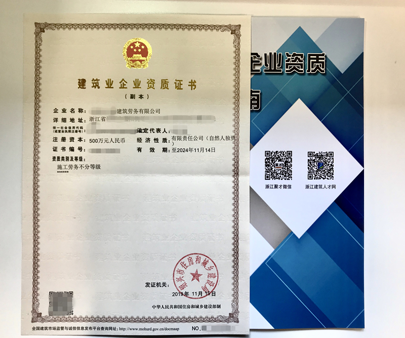 2019年11月,經(jīng)浙江省住房和城鄉(xiāng)建設(shè)廳審查核準(zhǔn),聚才全權(quán)代理申報的建筑業(yè)企業(yè)資質(zhì)—“建筑施工勞務(wù)”資質(zhì)順利獲批,并已取回新的資質(zhì)證書,這是聚才今年第6次成功代理申報建筑業(yè)企業(yè)資質(zhì)。